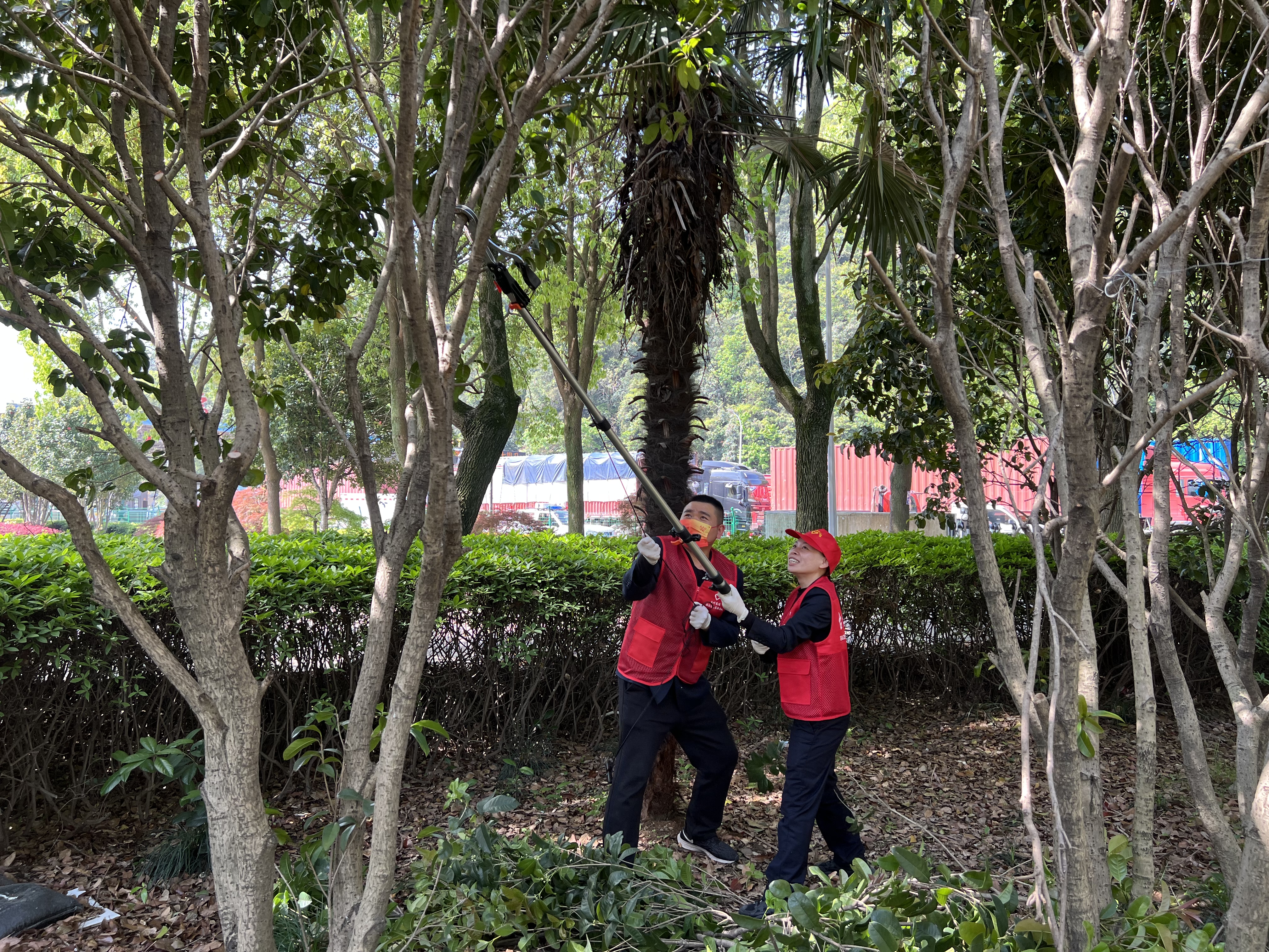 4月8日上午,臨海南支部黨員及行政人員臨時(shí)分成幾組組成志愿者團(tuán)隊(duì),戴上手套、拿上工具開(kāi)始在所內(nèi)進(jìn)行清理。勞動(dòng)中,大家分工分區(qū),相互配合,干勁十足。剪樹(shù)枝小分隊(duì)有人負(fù)責(zé)固定工具有人負(fù)責(zé)剪斷樹(shù)枝;除草小分隊(duì)有人用除草機(jī)大范圍大面積除草,有人用鐵鍬把遺漏的雜草連根拔起;后勤小分隊(duì)集體負(fù)責(zé)運(yùn)送樹(shù)枝雜草將其歸置一處,最后噴藥小分隊(duì)在所內(nèi)圍墻四周及邊溝附近噴灑除草劑及防蟲(chóng)藥。大家不怕臟、不怕累,一切都有條不紊地進(jìn)行著。經(jīng)過(guò)大家的辛勤勞動(dòng),所內(nèi)面貌煥然一新。