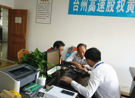 圖為黃巖收購點(diǎn)工作人員服務(wù)股東現(xiàn)場 “那時(shí)候沒錢,可咱領(lǐng)導(dǎo)干部要帶頭,這錢還是向自家兄弟借的?!边@是原市府領(lǐng)導(dǎo)夫人的原話。 “科室里沒人認(rèn)領(lǐng),我想著咱也為臺(tái)州建設(shè)作點(diǎn)貢獻(xiàn),就當(dāng)捐款吧!沒想到后來真的有分紅,現(xiàn)在還有這么高的收購價(jià),值了!”這是大多數(shù)股東的原話。