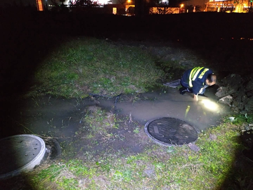 堅持不懈找水閘 不畏困難挽損失 12月17日晚,工程養(yǎng)護(hù)部機電設(shè)備維養(yǎng)中心值班隊員頂著寒風(fēng),通過細(xì)致耐心摸尋,成功找到水管總閘并將其關(guān)閉,不僅為公司節(jié)約幾百噸水資源,還為后續(xù)的搶修工作創(chuàng)造了有利條件。 當(dāng)晚19點左右,正在參加周一學(xué)習(xí)夜的中心隊員接到臺州南收費所電話,告知副站一根地下水管爆裂,附近積水較多。接到搶險指令后,隊員們火速趕往現(xiàn)場查看,發(fā)現(xiàn)漏點位于外廣場綠化施工區(qū)域,周邊堆滿了泥土,底下不停地涌出白花花的水,并向草坪兩邊流淌,形成了多個水坑。 “必須先找到水管總閘將其關(guān)閉,否則后續(xù)搶修工作沒法開展?!标犻L陳華棟一邊說一邊解衣?lián)Q鞋,借著隊友微弱的手機燈光,打開了周圍一個個標(biāo)有“水”字窨井蓋,可一連打開三個都未發(fā)現(xiàn)有水閘時,有人勸他晚上光線不好先行暫停,等明天天亮后再尋找。